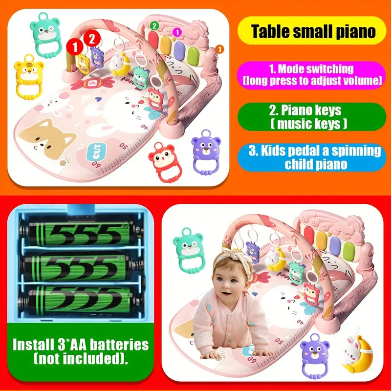 ¡Haz que los primeros pasos de tu bebé sean mágicos con nuestra Alfombra Musical! Diseñada para estimular los sentidos y fomentar el desarrollo temprano, esta encantadora alfombra combina colores vibrantes, sonidos divertidos y texturas suaves para crear una experiencia interactiva única.