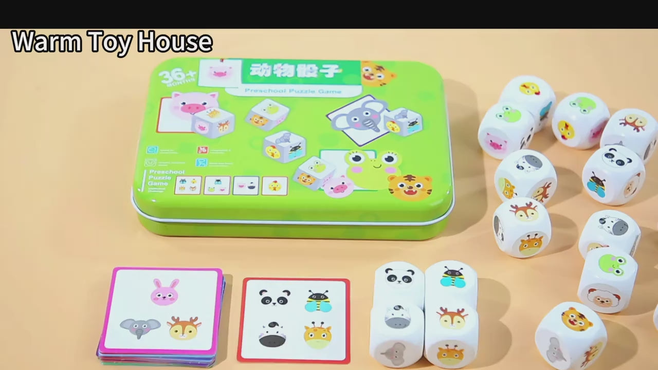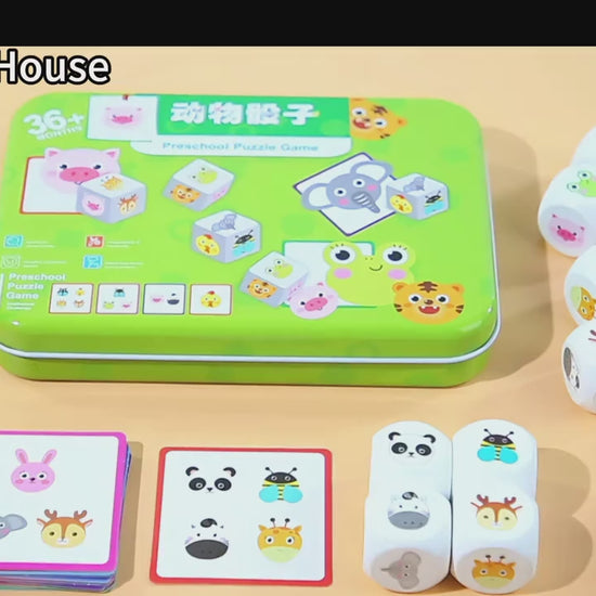 Este Juego de Dados Animales Didácticos es perfecto para niños desde 3 años: impulsa habilidades cognitivas mientras se divierten emparejando adorables caritas de animales.