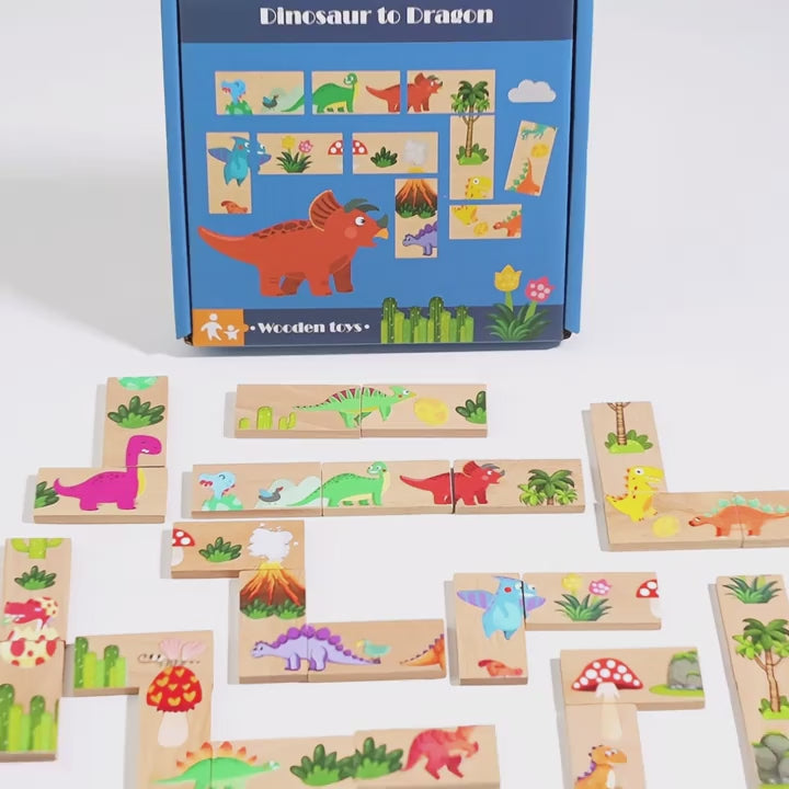 Un dominó educativo que lleva a los niños al fascinante mundo de los dinosaurios, mientras desarrollan habilidades cognitivas clave jugando 🦖✨.