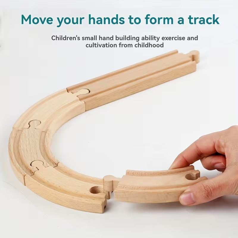 🚂 Vías de tren de madera con encajes firmes y seguros.