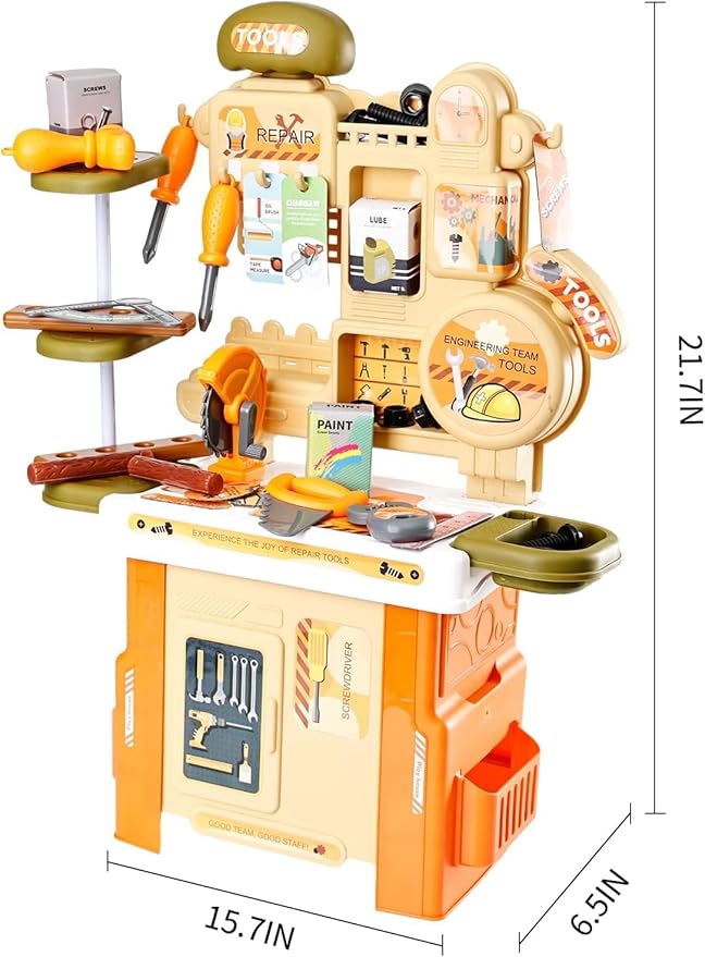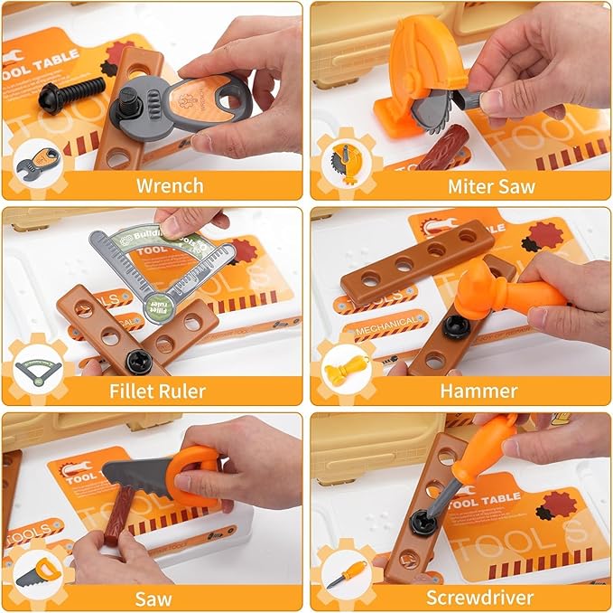 ¡Pequeños constructores en acción! La Mesa de Herramientas Mágica es el juguete perfecto para que tu peque explore, imagine y aprenda mientras juega a ser un verdadero carpintero. Con piezas seguras y coloridas de plástico, cada tornillo, martillo y destornillador se convierte en una oportunidad para desarrollar habilidades motoras y creativas.