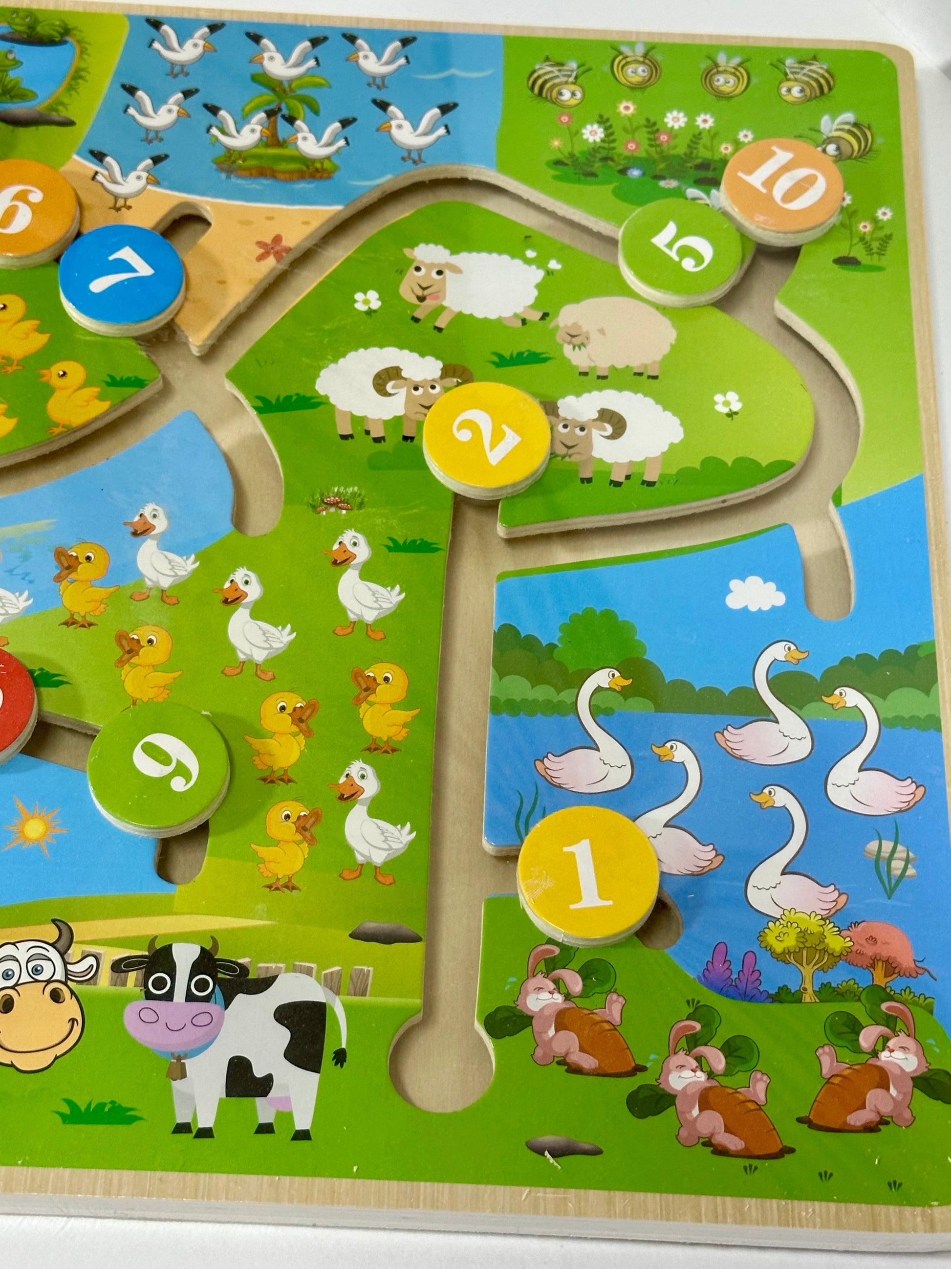 El "Números en Movimiento" es un fascinante juego educativo que transforma el aprendizaje numérico en una emocionante travesía. Este innovador laberinto incluye: