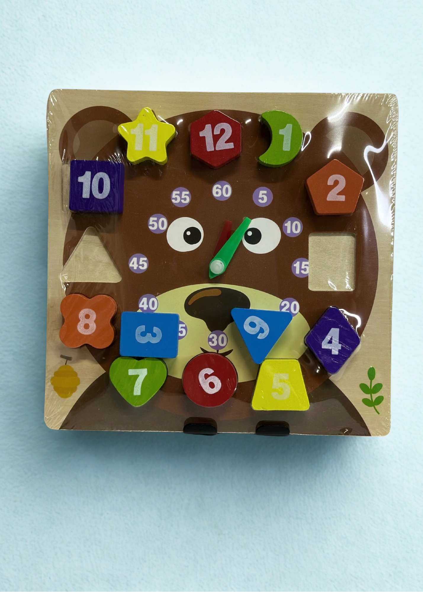¡Hacer que aprender a leer la hora sea encantador y entretenido con nuestro Reloj Rompecabezas Educativo de Oso! Un juguete de madera con diseño adorable que enseña a los niños los conceptos básicos del tiempo de manera interactiva. Números grandes y claros, material seguro y además desarrolla habilidades como el reconocimiento numérico y coordinación mano-ojo.