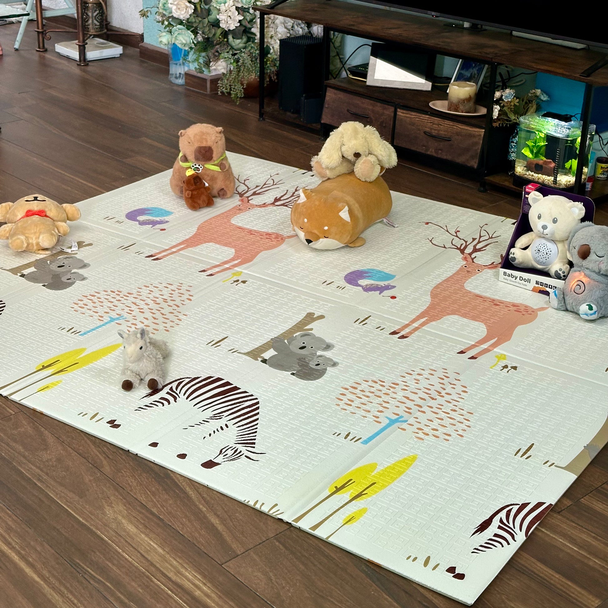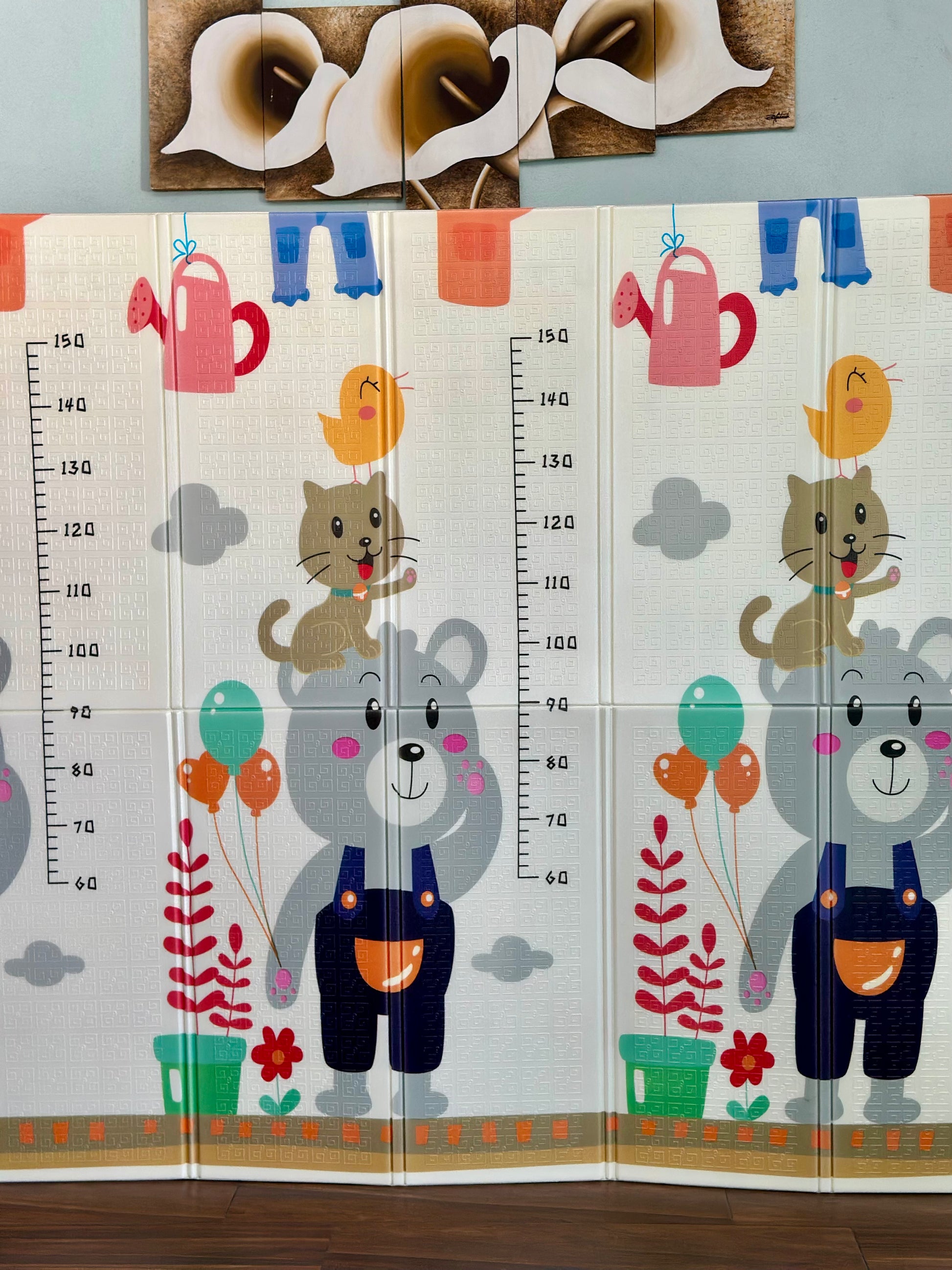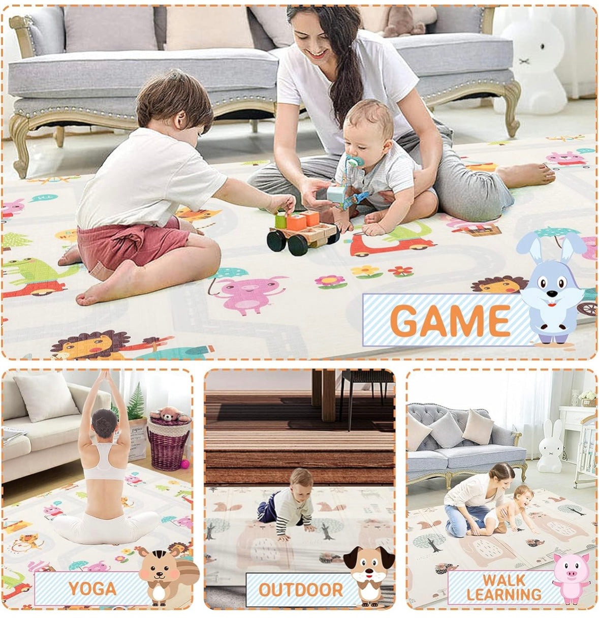 Descubre los primeros pasos de tu bebé con nuestro tapete extragrande de doble cara. Diseñado para estimular su desarrollo sensorial y motor, ofrece un espacio seguro para jugar y gatear. Su material suave y antideslizante es fácil de limpiar y se puede transportar fácilmente. Perfecto para regalar y crear un área de juego en casa.